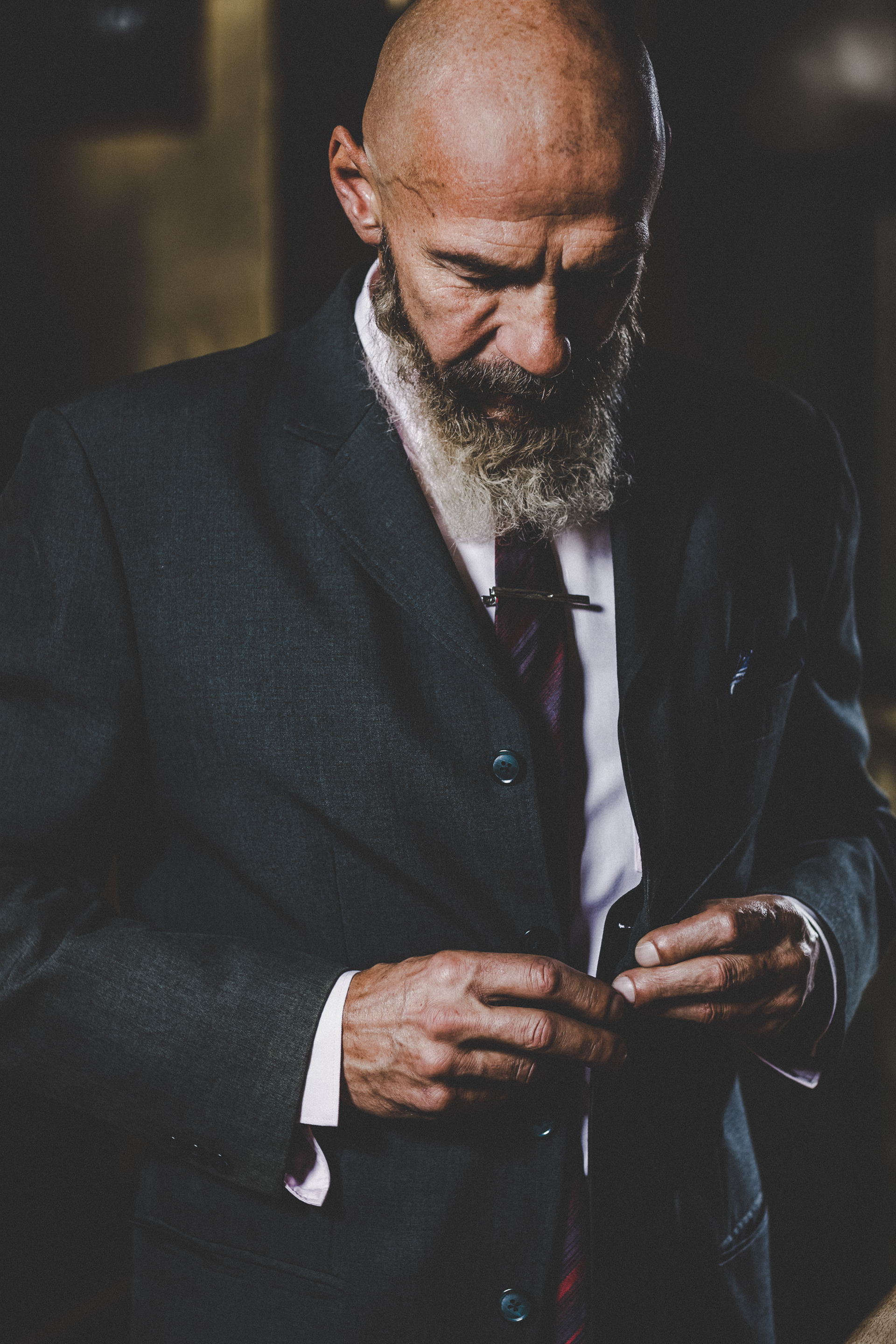 Mann mit Bart im Anzug in Bar